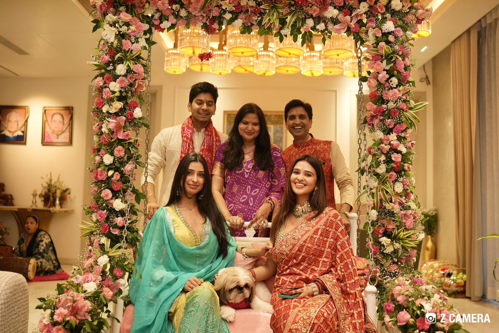 The ceremony was made even more special with the presence of Union Minister Smriti Irani, who joined the family in the festive rituals. In a heartwarming gesture, she showered petals on the newlyweds and participated in the traditional jhula ceremony – a symbolic ritual that marks the joy and devotion associated with Teej.