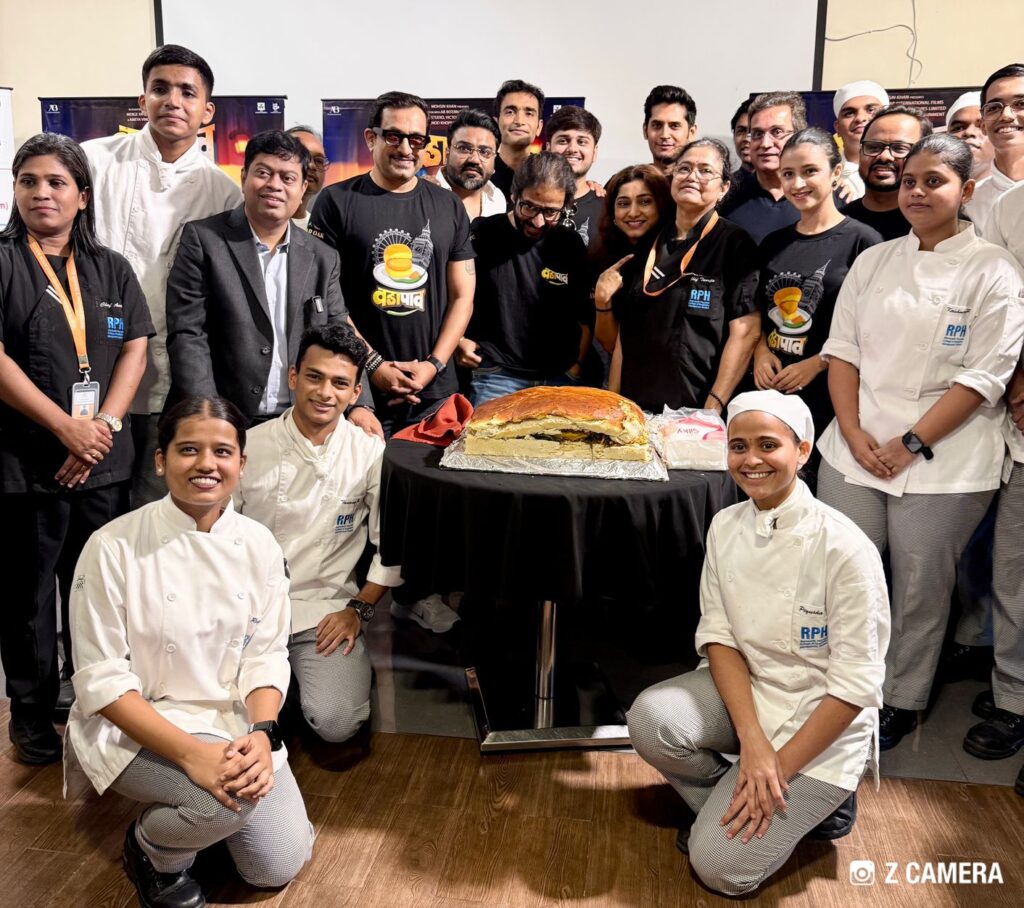 सध्या सर्वत्र ‘वडापाव’ या चित्रपटाची जोरदार चर्चा रंगली आहे. चित्रपटातील गाणी व ट्रेलरला प्रेक्षकांचा कमाल प्रतिसाद मिळत आहे. तसेच चित्रपटाचे प्रमोशनही जोरदार सुरू आहे. या बहुचर्चित चित्रपटाचा भाग होण्यासाठी रामनाथ पय्याडे कॉलेज ऑफ हॉस्पिटॅलिटी स्टडीज यांनी ‘वडापाव’ च्या टीमला खास आमंत्रित करून त्यांना एक भन्नाट सरप्राईज दिले. कॉलेजमधील टॅलेंटेड शेफ्सनी तब्बल साडे सात किलोचा वडापाव बनवला! शेफ्सची ही पाककृती पाहून ‘वडापाव’ ची टीम थक्क झाली व त्यांनी या वडापावचा आस्वाद घेतला.