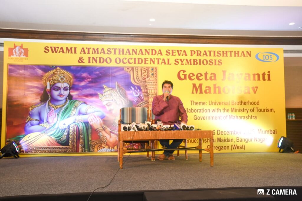 The Gita Jayanti Mahotsav 2025 is a week-long spiritual and cultural celebration to be held from 30th November to 6th December 2025 at Vishnu Maidan, Bangur Nagar, Goregaon (West), Mumbai. This grand event is being organized by Swami Athmasthanada Seva Pratishthan in collaboration with Indo Occidental Symbiosis, Supported by Government of Maharashtra, Department of Tourism. This celebration will be held under the central theme of “World Brotherhood.”