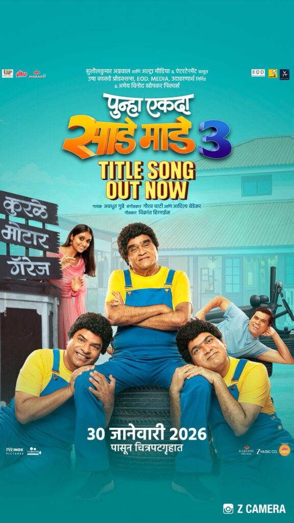 टीझर, ट्रेलरनंतर आता प्रमोशनल साँगने ‘पुन्हा एकदा साडे माडे तीन’ची उत्सुकता शिखरावर नेली आहे. तीन भावांचा हा धमाकेदार, निरागस आणि मनमोकळा जल्लोष मोठ्या पडद्यावर अनुभवण्यासाठी प्रेक्षक आतुरतेने वाट पाहात आहेत. ‘पुन्हा एकदा साडे माडे तीन’ येत्या ३० जानेवारीला सर्वत्र प्रदर्शित होत आहे.
