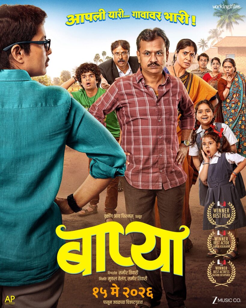 आंतरराष्ट्रीय स्तरावर गौरव मिळवलेला आणि अनोख्या संकल्पनेमुळे चर्चेत असलेला ‘बाप्या’ हा आगळावेगळा मराठी चित्रपट आता प्रेक्षकांच्या भेटीसाठी सज्ज झाला आहे. ‘’आपली यारी… गावावर भारी!’’ अशी हटके टॅगलाईन असलेला हा चित्रपट १५ मे रोजी सर्वत्र प्रदर्शित होणार असल्याची घोषणा करण्यात आली आहे. वर्किंग आय फिल्म्स प्रस्तुत या चित्रपटाचे नुकतेच प्रदर्शित झालेले पोस्टर सध्या सोशल मीडियावर प्रेक्षकांचे लक्ष वेधून घेत आहे आणि या वेगळ्या चित्रपटाबद्दलची उत्सुकता अधिकच वाढवत आहे.