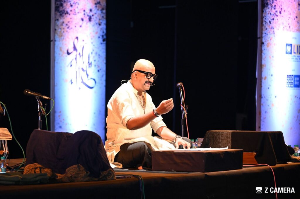 कार्यक्रमाची सुरुवात अभिनेता वैभव मांगले यांच्या प्रभावी कथावाचनाने झाली. त्यांनी प्रख्यात लेखक विद्याधर पुंडलिक यांच्या ‘माळ’ या गाजलेल्या कथेचे वाचन सादर केले. मानवी नातेसंबंध, एकटेपणा आणि भावनिक पोकळी यांचे सूक्ष्म दर्शन घडवणाऱ्या या कथेचे त्यांनी केलेले सादरीकरण इतके जिवंत होते की, सभागृहातील रसिक अक्षरशः मंत्रमुग्ध झाले. ‘माळ’ ही केवळ ओसाड जागेची प्रतिमा नसून, मनातील रिकामेपणाचे प्रतीक आहे, हे त्यांनी आपल्या वाचनातून प्रभावीपणे उलगडले. मास्तर आणि काशीताई यांसारख्या व्यक्तिरेखा जणू रंगमंचावर सजीव झाल्याचा भास रसिकांना झाला. उपस्थितांनी या वाचनाला उत्स्फूर्त दाद दिली.
